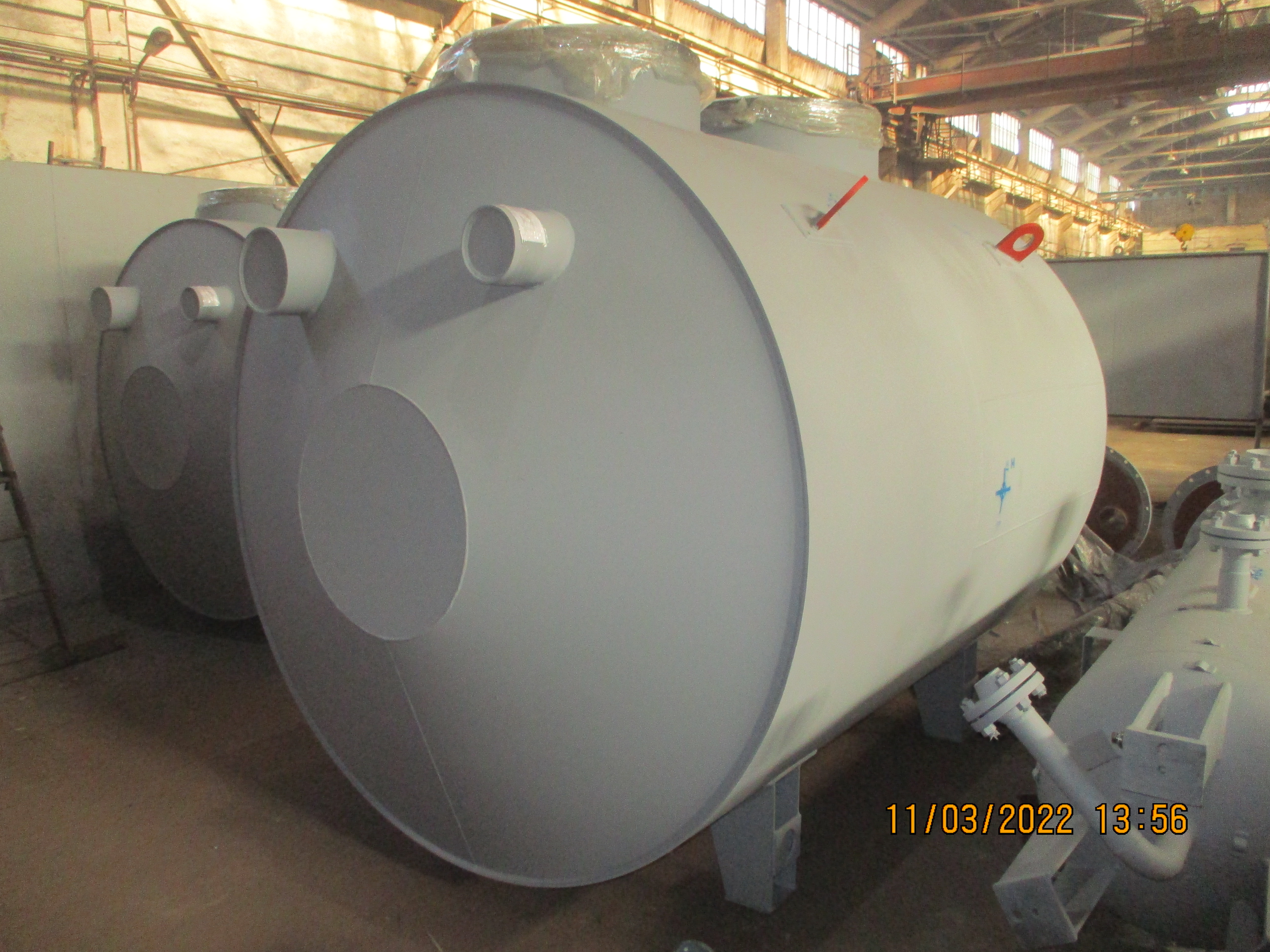 Емкости подземные конструктивно представляют собой полый цельносварной сосуд, работающий под давлением не выше 0,07 МПа, объемом до 200 м3, состоящий из металлического цилиндра и конических днищ. Для технологического обслуживания на верхней стороне обечайки, как правило, устанавливают два люка: один для слива хранимого продукта с помощью насоса, второй – для получения доступа внутрь для профилактического осмотра, технологического обслуживания и ремонта (очистка, продувка, промывка).