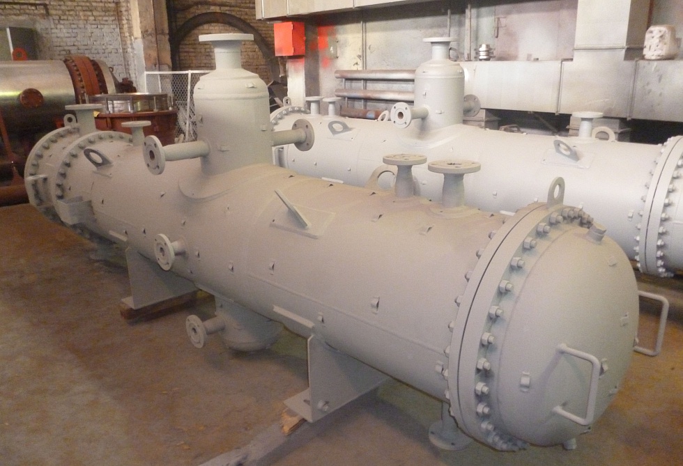 Испарители термосифонные с неподвижными трубными решетками типа ИНТ, с неподвижными трубными решетками и температурным компенсатором на кожухе типа ИКТ, а также с плавающей головкой типа ИПТ применяются для испарения сред в различных промышленных процессах.